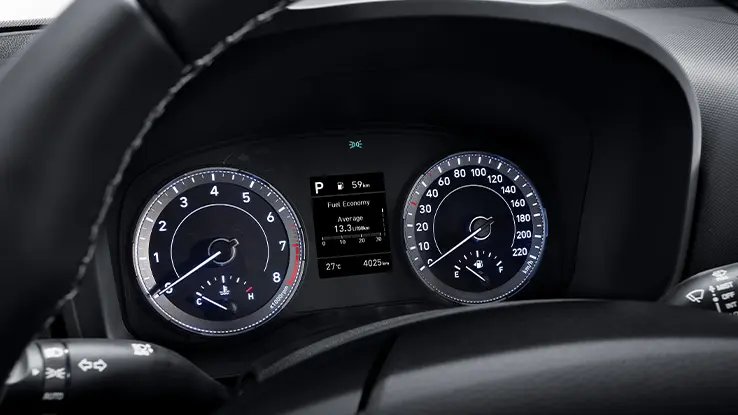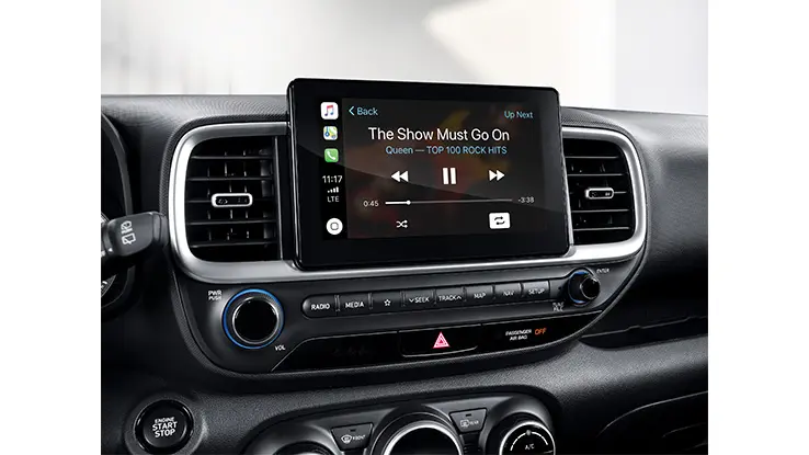O VENUE apresenta tecnologias avançadas que lhe proporcionam mais conveniência nas suas viagens. O seu sistema de infotainment inclui um ecrã tátil de 8”e uma câmara traseira com guias orientadoras dinâmicas. O painel de instrumentos desportivo e multidimensional garante uma leitura fácil da informação, enquanto os três comandos circulares do ar condicionado permitem um controlo intuitivo e prático. Estes elementos de design icónicos unem-se para criar uma identidade única.