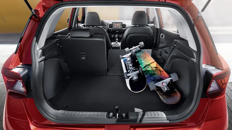 O espaço interior apelativo e a cabina confortável garantem versatilidade para o dia a dia urbano. O VENUE vem equipado de série com um banco traseiro rebatível 60:40 maximizando a utilidade para as suas deslocações. Além disso, um piso de bagageira ajustável em dois níveis e uma prateleira de cobertura permitem um armazenamento adaptado ao seu estilo de vida. Com a possibilidade de inserir a prateleira de cobertura na parte traseira do banco, a bagageira foi concebida para acomodar tanto objetos altos como volumes de grande dimensão.