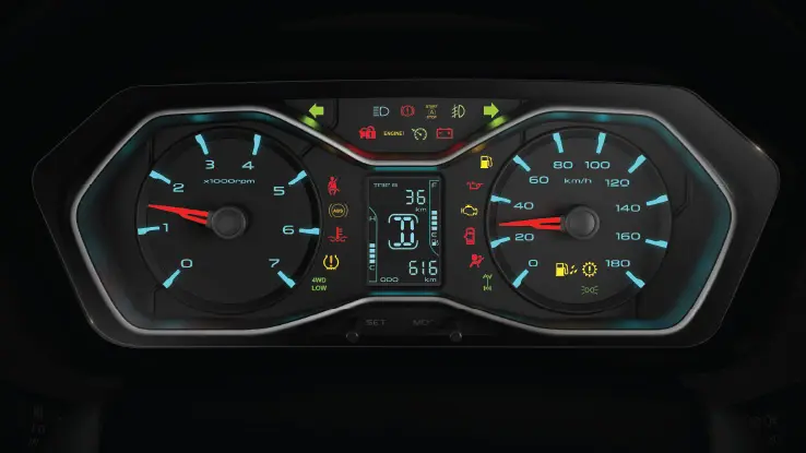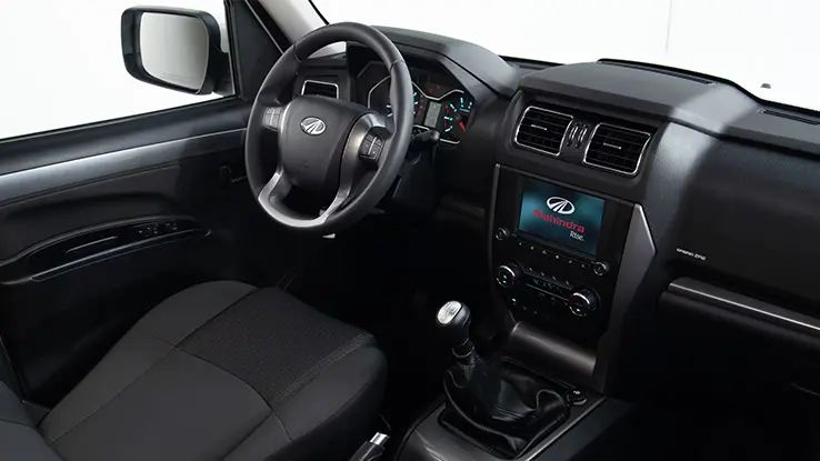 Na Mahindra Pikup, cada detalhe foi concebido para tornar a sua condução mais confortável e prática. Ar condicionado, vidros elétricos à frente e atrás, controlos multimédia no volante, duas entradas de 12V e banco do condutor ajustável em altura garantem comodidade em todas as viagens. O painel de instrumentos, moderno e intuitivo, oferece-lhe num só olhar todas as informações essenciais do veículo, desde a transmissão e quilometragem, à temperatura e distância percorrida. Mais do que robustez, a Mahindra Pikup oferece-lhe conforto e controlo em qualquer estrada.