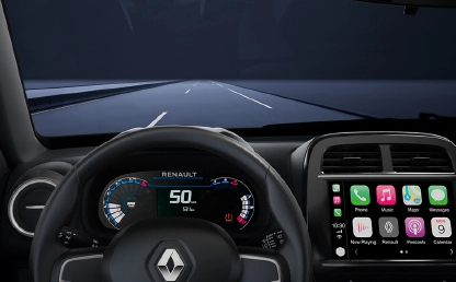 Descubra uma nova forma de conduzir com a tecnologia do Renault Kwid. O sistema multimédia com ecrã tátil de 8 polegadas permite-lhe aceder facilmente à replicação do smartphone e às principais informações do veículo. O painel de instrumentos digital oferece uma leitura clara e intuitiva, enquanto a câmara de marcha-atrás facilita todas as manobras. Para um conforto acrescido a bordo, o ar condicionado garante o bem-estar de todos os ocupantes.